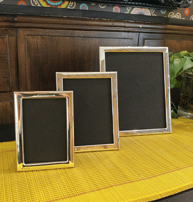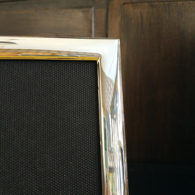 Englannissa valmistettu hopeinen valokuvakehys 25x20 kuvalle sileällä reunalla