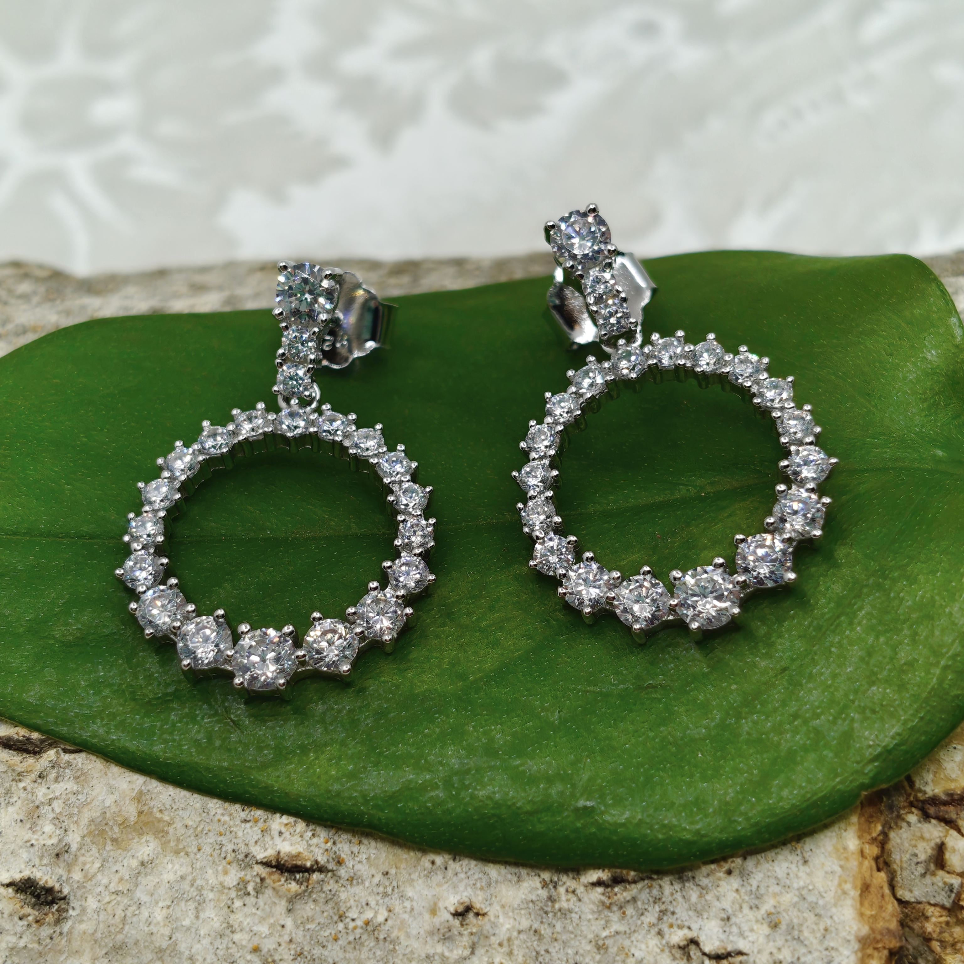 Sac Silverin kauniit pyöreät hopeiset korvakorut ovat täynnä zirkonia kiviä.